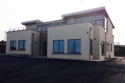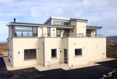 New build Stunning  architecturally designed property on a spectacular and elevated site that offers panoramic views of mountains, sea, lake and islands. In a rural setting at the end of a cul-