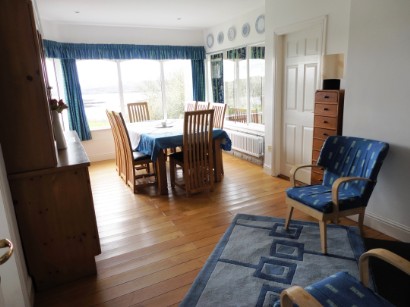 The dining area overlooks the bay and with extensive glazing surround, it enjoys fantastic natural light.