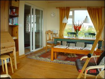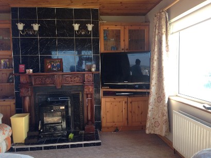 Sitting room:  West facing with ocean views to include Omey Island, Cruagh Island and Streamstown Bay. Spacious room measuring 17ft. 06ins X 12ft. Open fire with natural stone surround and timber mantle over. Accessed both from hallway and kitchen.