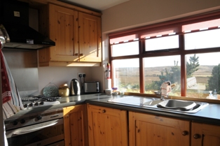 The second area features the kitchen. This is situate to the rear of the house with a south west aspect through a large picture window. Fully fitted out with both wall and floor mounted units together single drainer sink and tiled floor. White goods include Electric oven, gas hob, dish washer and an under fridge. Note. A small freezer together with washing machine are located in the out office.