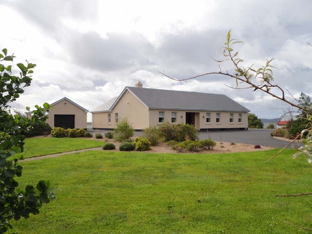 and surrounds. Built to a very high standard and with its positioning on its five and half acre site which extends from public road to Kilkerrin Bay,  it offers great privacy and terrific views. The frontage has been landscaped combining lawn areas with gravelled inserts and rockeries.