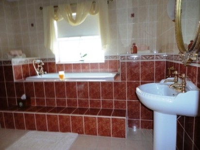 Fully fitted and tiled with raised bath in situ, shower, W.H.B. and toilet.